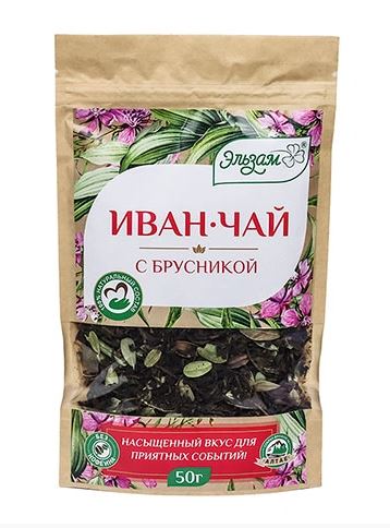 Травяной напиток "Иван-чай с брусникой", листовой ферментированный. 50гр.