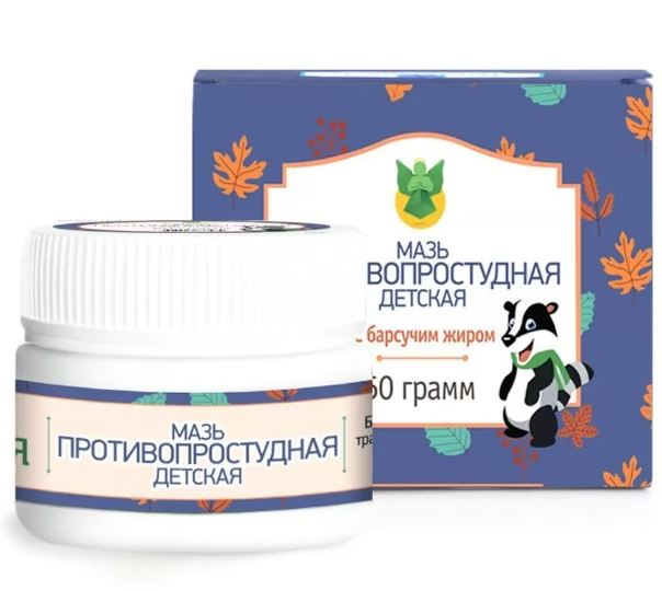 Мазь противопростудная детская с барсучьим жиром помогает устранить симптомы ОРЗ, избавляет от заложенности носа и болезни горла. Обладает антисептическим, противоспалительным и обезбаливающим действием. Компоненты мази воздействуют на рецепторы кожи, активные элементы препарата вызывают прилив крови к участкам кожи и близлежащим органам.