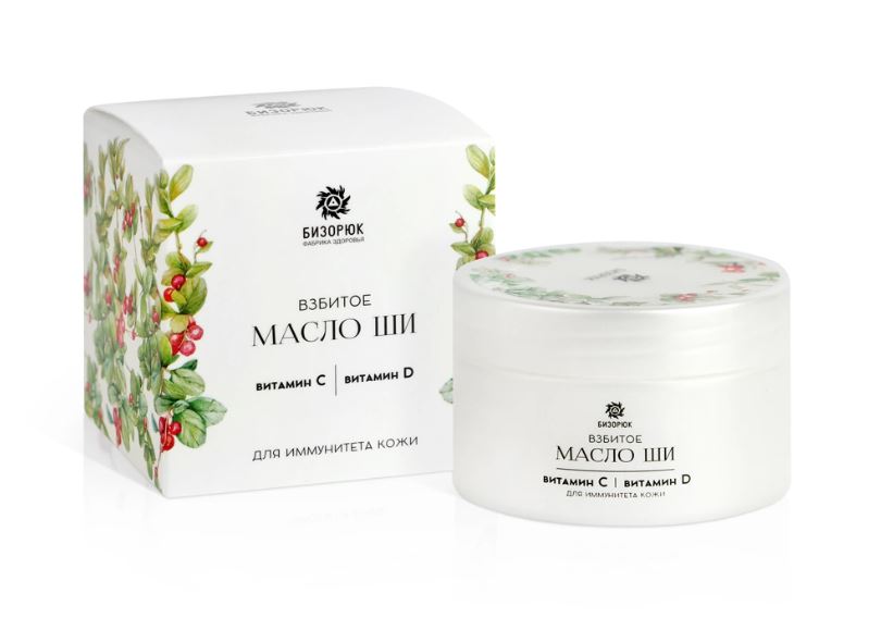 Взбитое масло ши с витамином С и витамином D, для иммунитета кожи, "Бизорюк", 50 мл, пластик