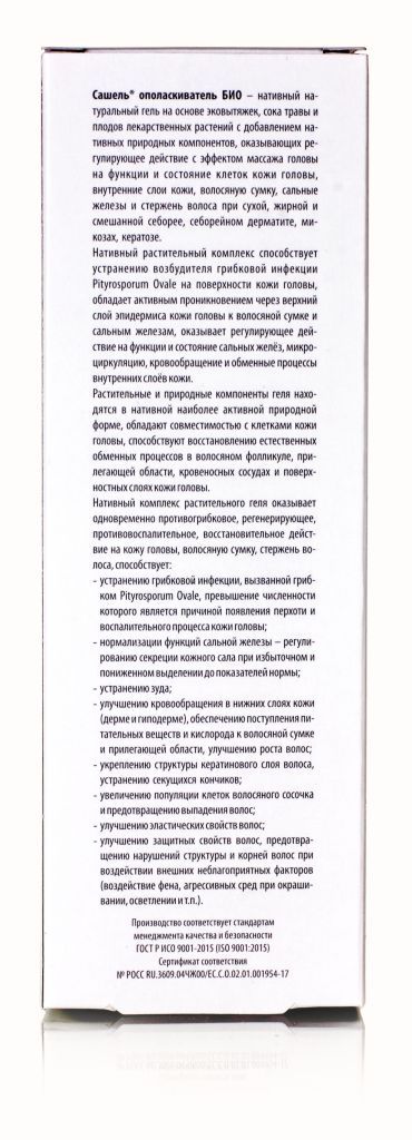 Растительные и природные компоненты геля Сашель® БИО находятся в нативной наиболее активной природной форме, обладают совместимостью с клетками кожи головы, способствуют восстановлению естественных обменных процессов в волосяном фолликуле, прилегающей области, кровеносных сосудах и поверхностных слоях кожи головы.