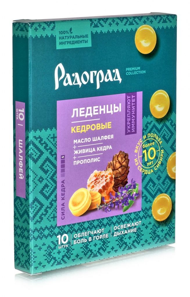 Леденцы с живицей кедра и прополисом. С шалфеем 10шт по 3.2гр. Радоград